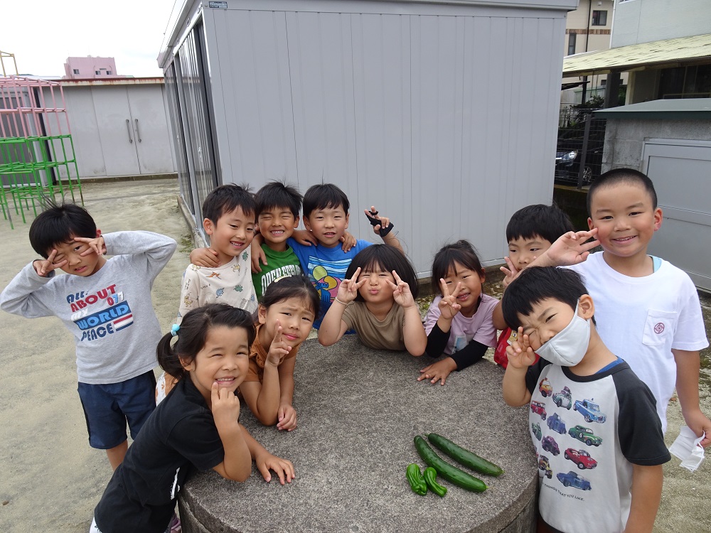 ぞう1くみさんみんなで夏野菜を植えました。