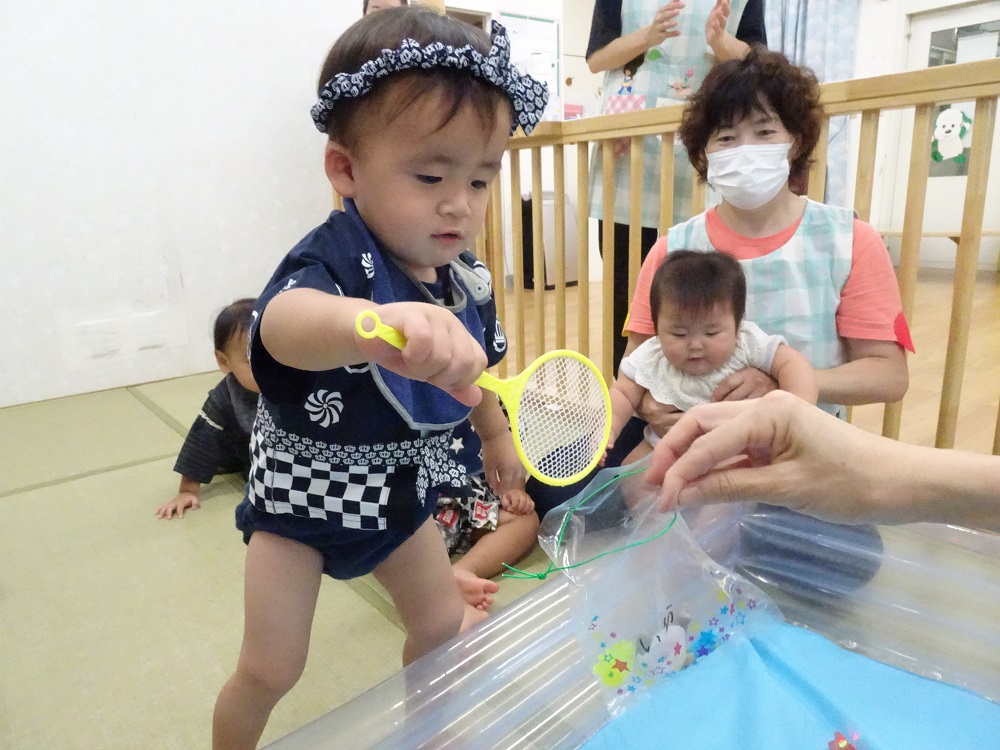 上手にすくったり釣ったり・・・。綿あめも・・・あたしのどれ?とわたあめが逃げないようにジーーーーッ・・・・